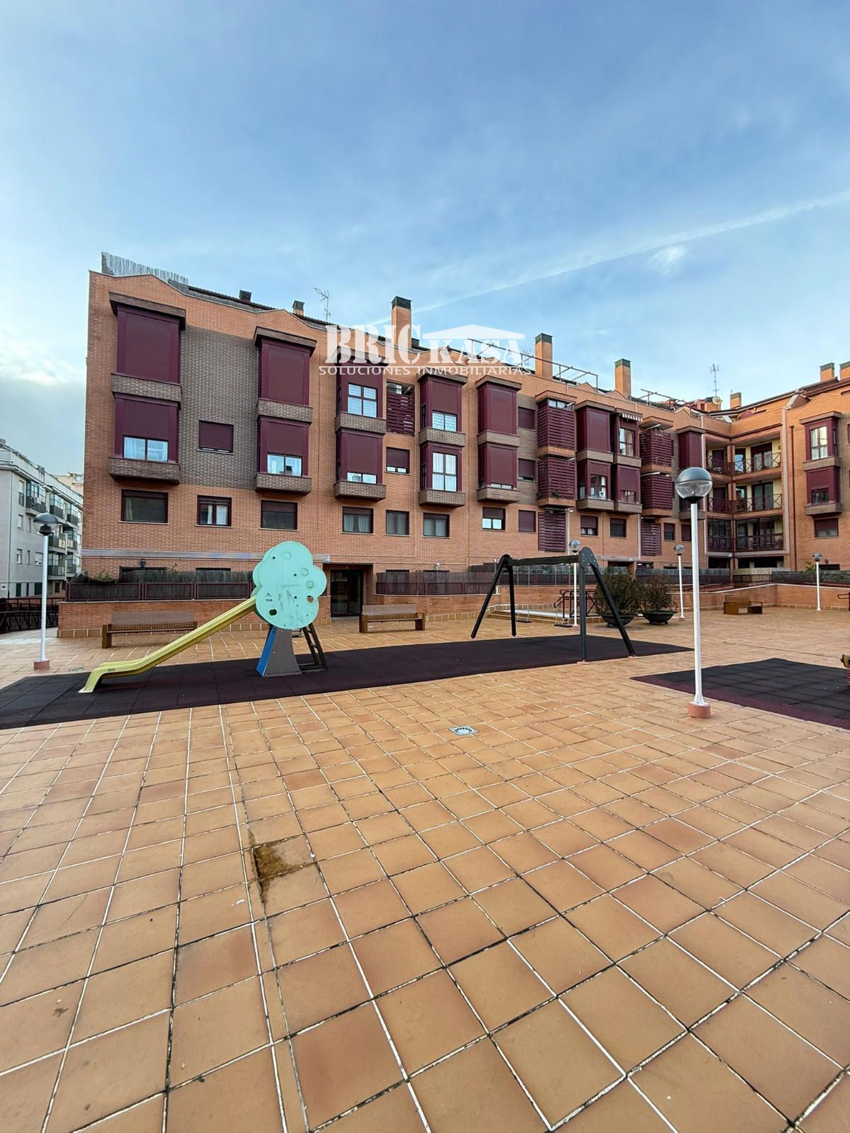 El edificio ofrece zonas comunes diseñadas para el disfrute, como un parque infantil para los más pequeños y una atractiva piscina para relajarse durante los meses de verano.