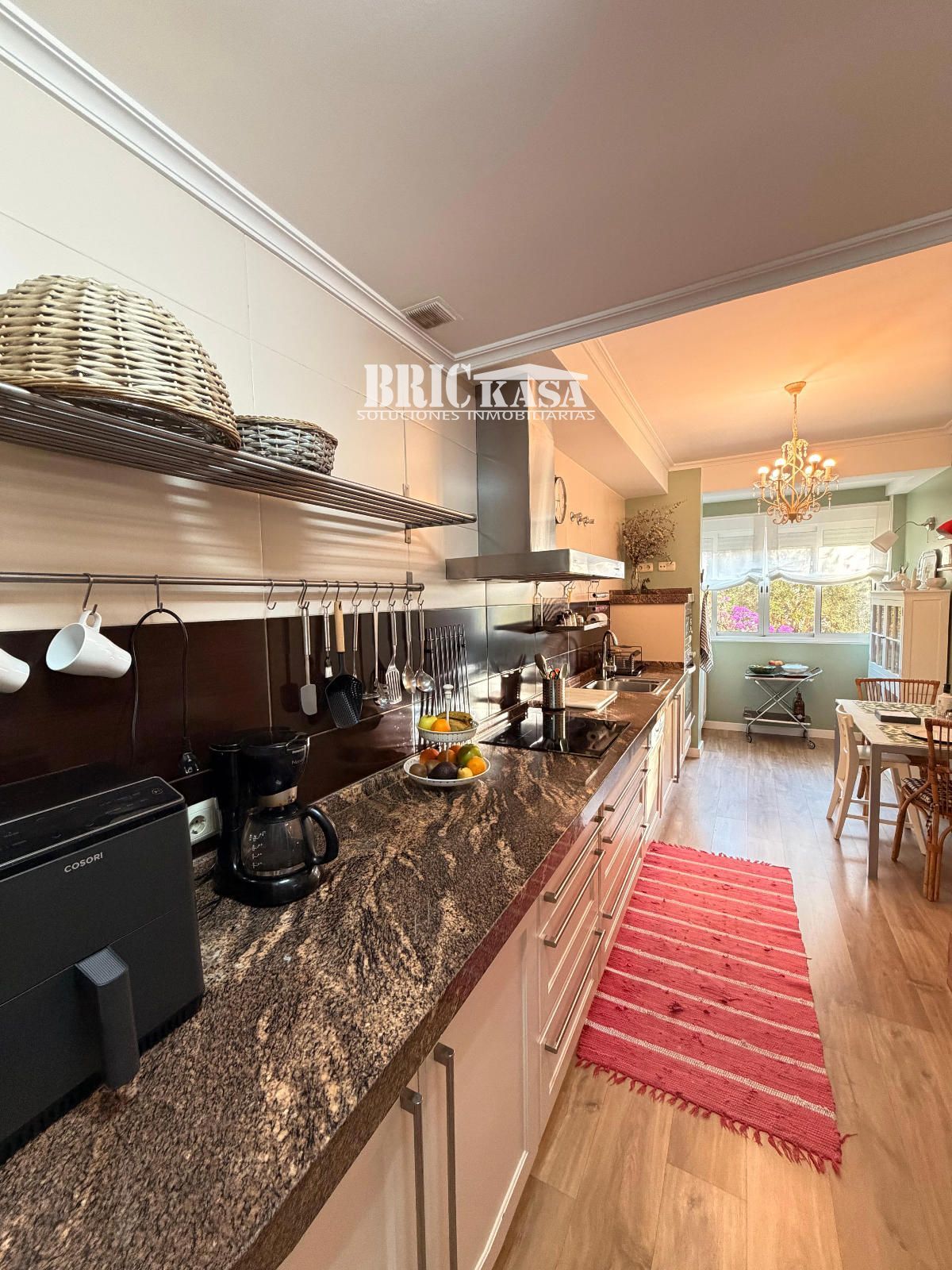 La cocina, grande y totalmente equipada, ofrece un espacio cómodo y funcional, ideal para el día a día.